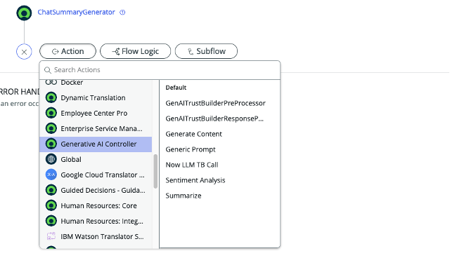 This functionality can be used through Flow Designer or Virtual Agent. The customer selects the LLM provider from various options (e.g. Now LLM, OpenAI, Azure), meaning the output depends on the chosen provider.